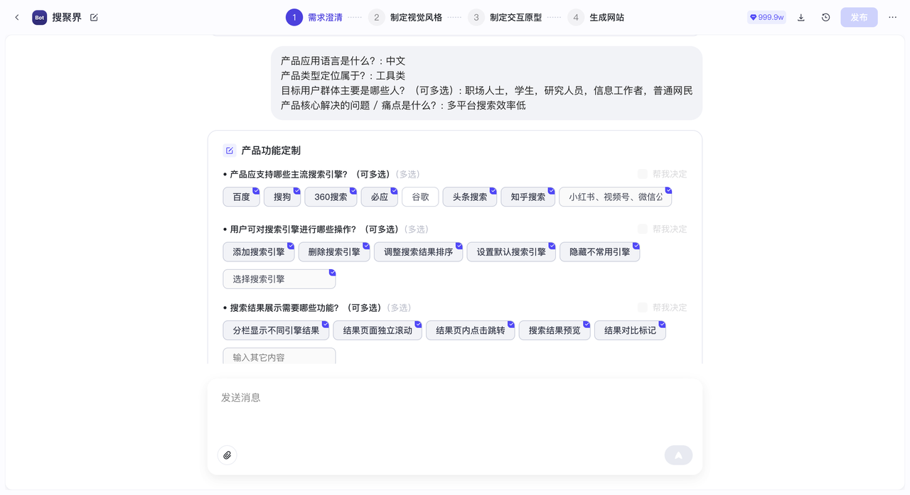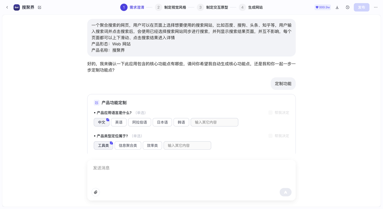 输入你的想法,coze接下来就会根据你输入的想法,给出一些功能定制项让你选择,基本上你只需要点点点就好,如果你觉得系统给出选项不符合你的要求,你也可以【输入其它内容】。