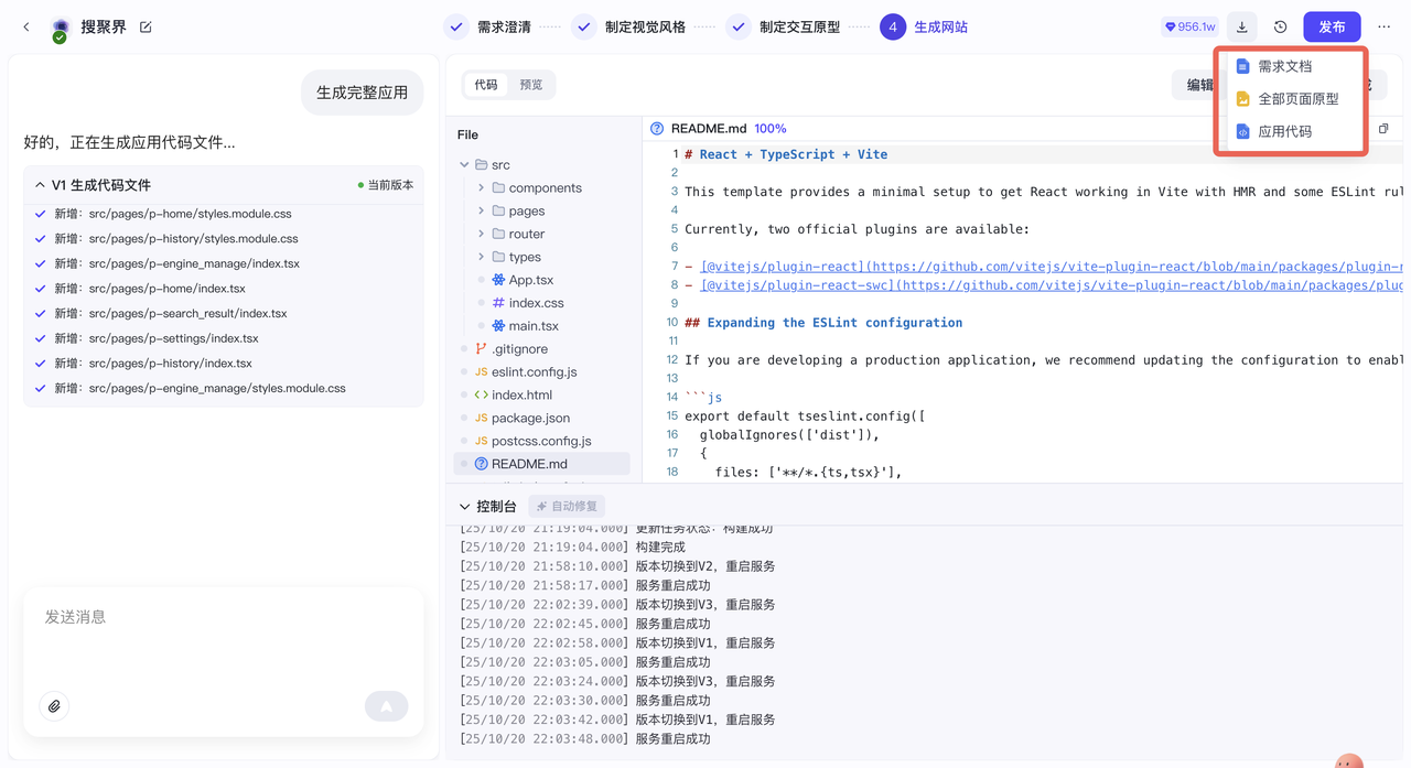 这是最关键的一步,系统会快速生成所有代码文件,并支持页面预览。
